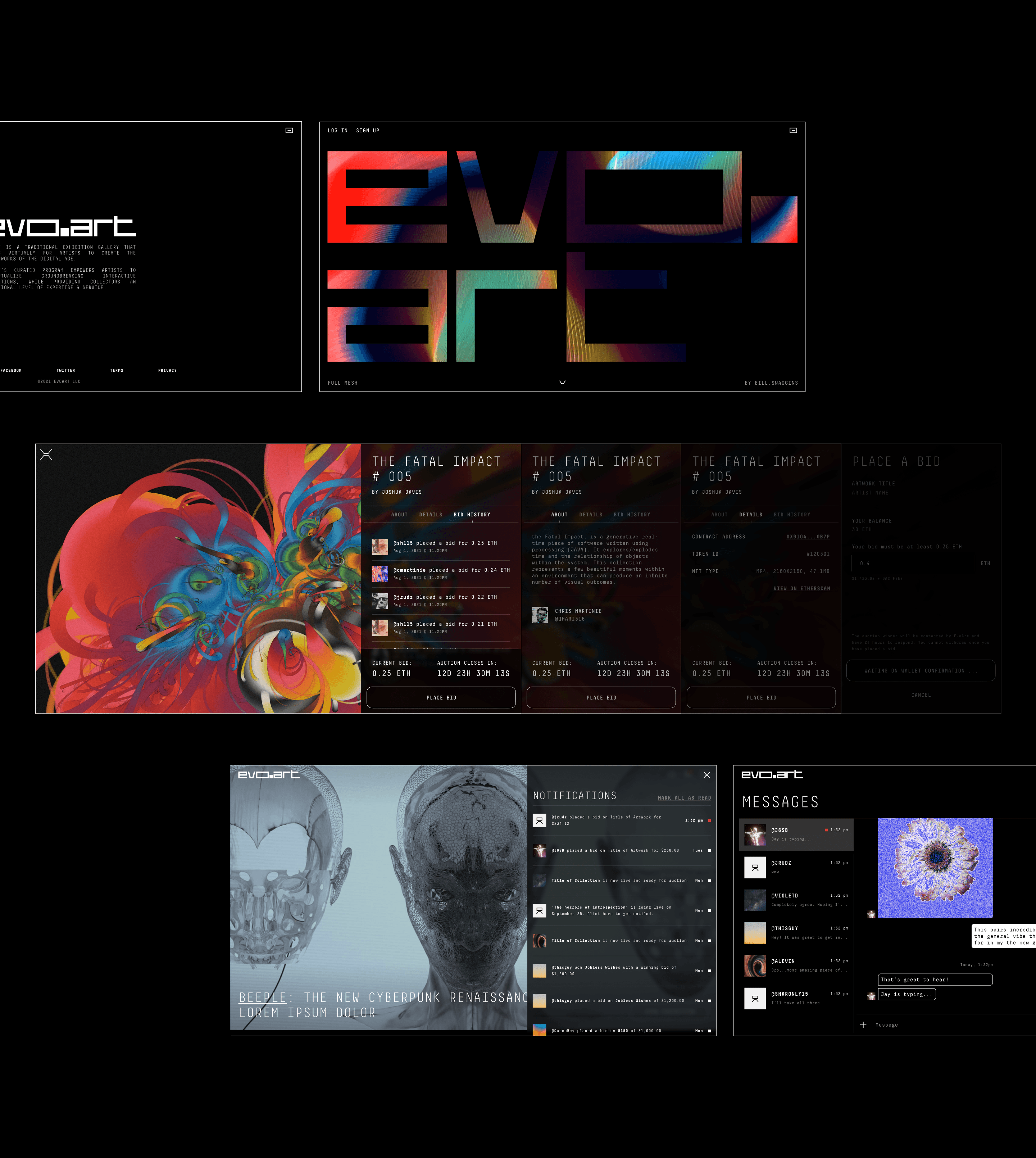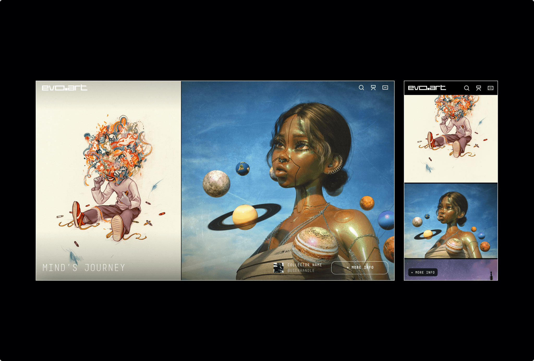 Throughout the project, I worked closely with Evo.art's team to ensure that the digital experience maintained the integrity and artistic excellence of a physical gallery while leveraging the unique possibilities of the metaverse. The resulting design seamlessly blends technology with art, creating a platform that's both innovative and user-friendly.
